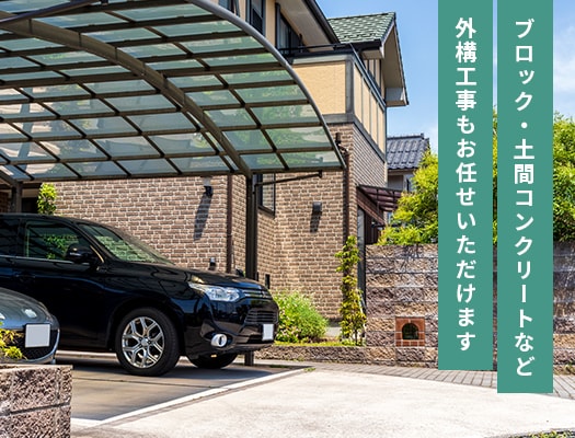 ブロック工事・土間コンクリート関連の外構工事を得意としている当方。外構一式でお任せいただけますので、新築でもリフォームでもご相談ください。
