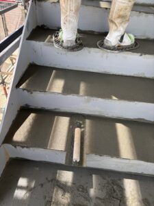 【岡山県倉敷市】左官工事|鉄骨階段をモルタルで下地処理を行いました。